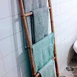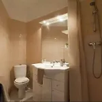 Badeværelsesfaciliteter indeholder en bruser, en hårtørrer og håndklæder.